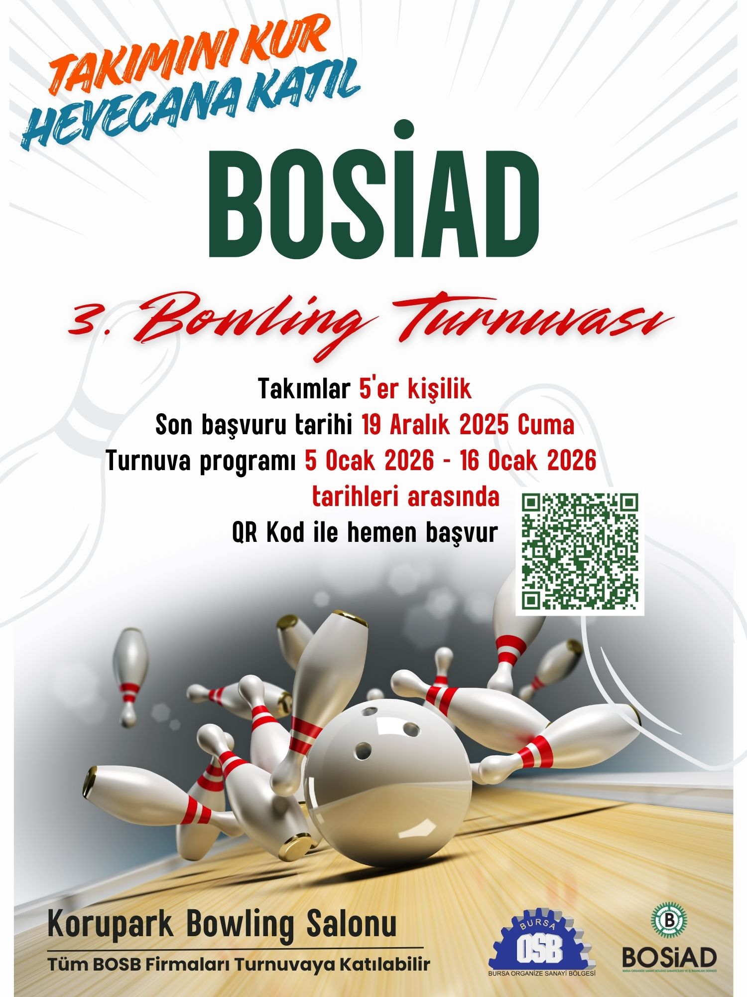 BOSİAD olarak “Mutlu çalışan, mutlu işyeri, mutlu müşteri demektir” düşüncesiyle çalışanların iç iletişimini güçlendirmek ve iş yaşamındaki zorluklarla başa çıkabilmelerine destek olmak amacıyla düzenlediğimiz sosyal etkinliklerimizden BOSİAD Bowling Turnuvası başlıyor.