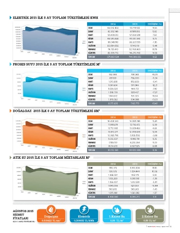 PROSES SUYU 2015 İLK 8 AY TOPLAM TÜKETİMLERİ M 3