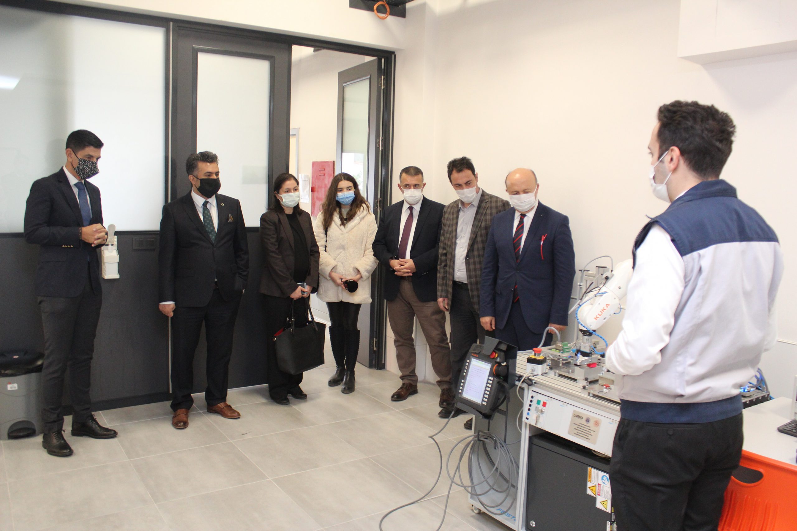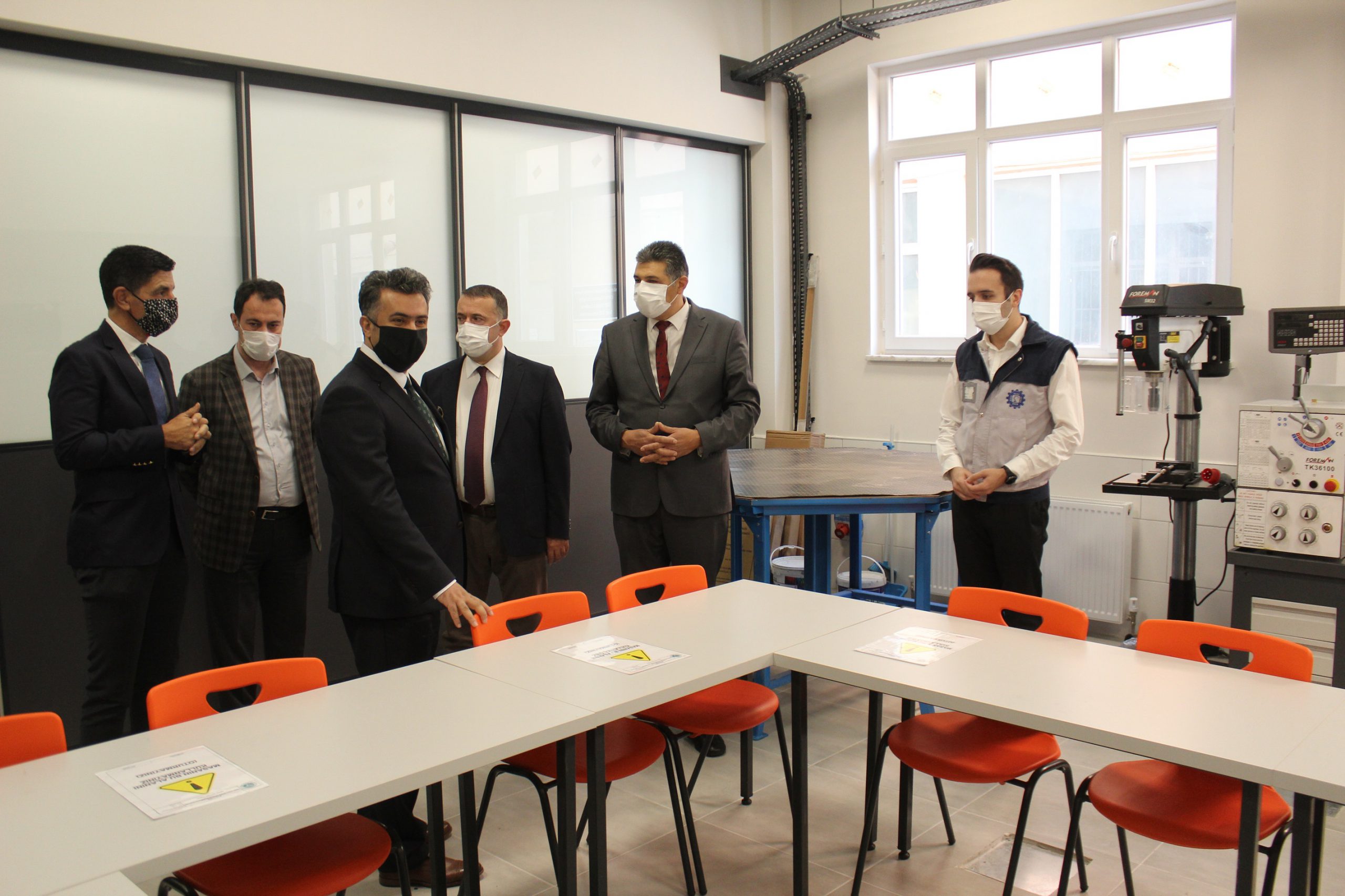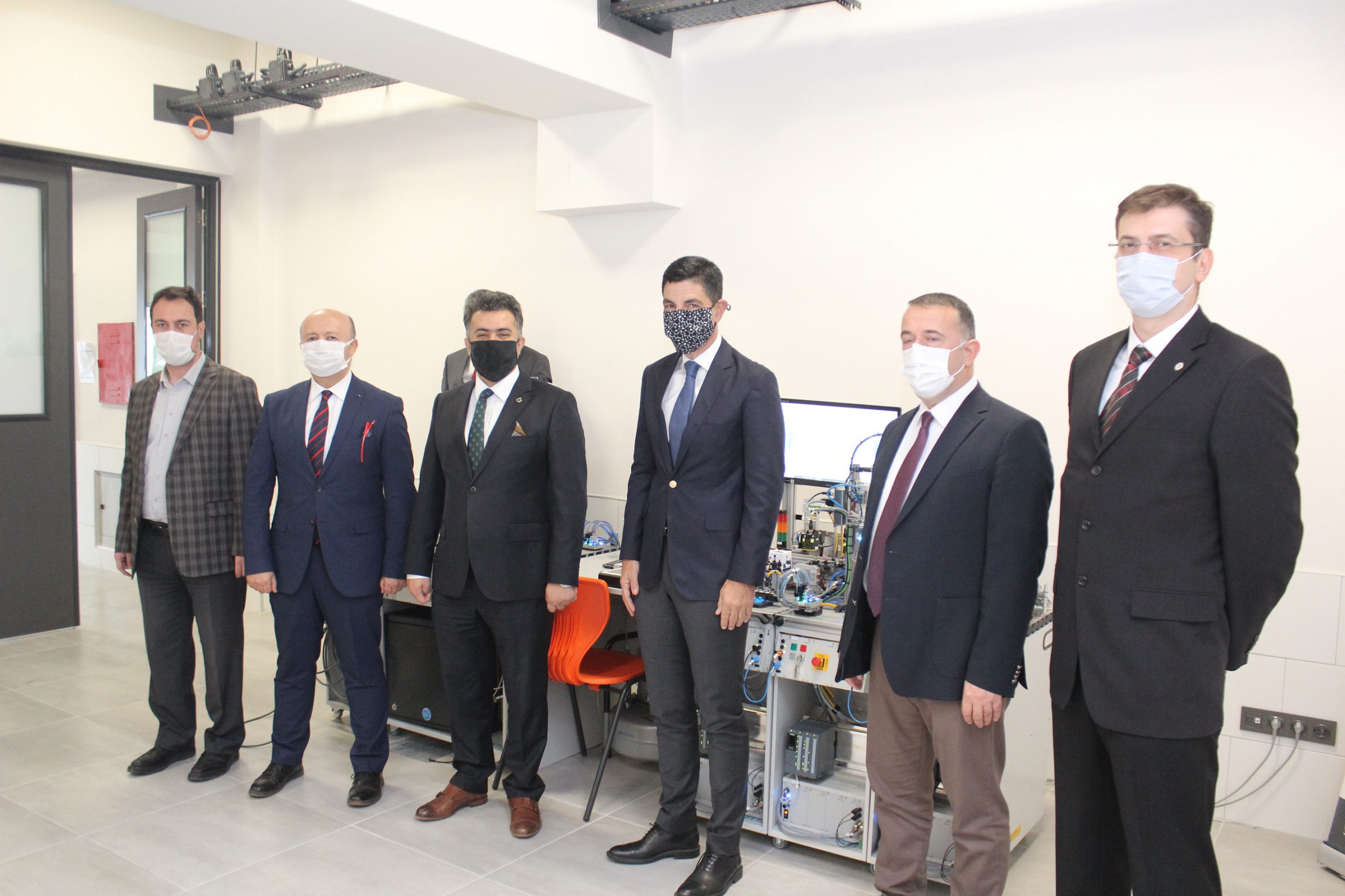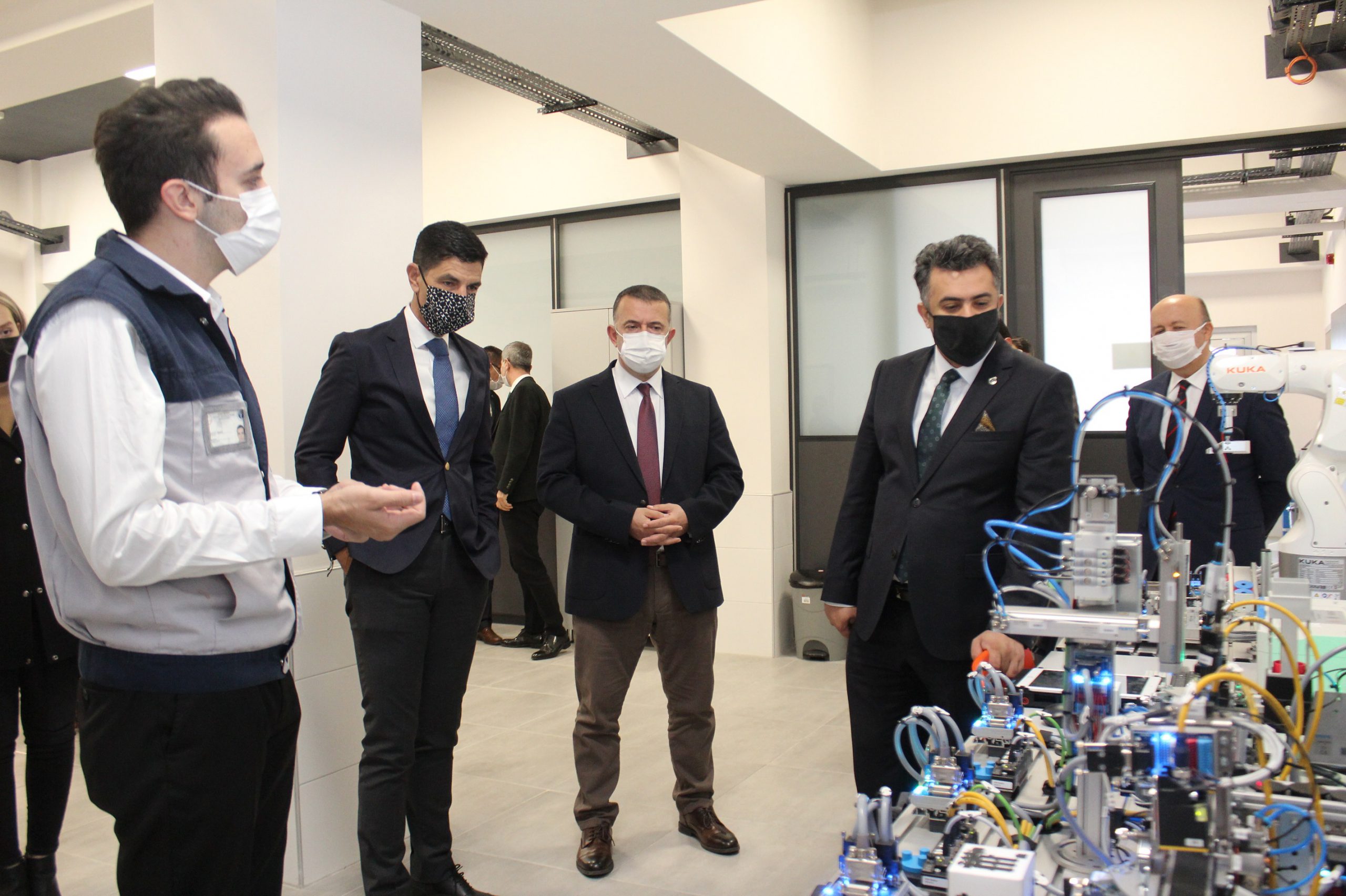 BOSİAD Başkanı Rasim Çağan, BEBKA Genel Sekreteri M. Zeki Durak, İl Milli Eğitim Mesleki ve Teknik Eğitim Şube Müdürü Bülent Altıntaş ve BOSİAD üyesi sanayiciler, okulda kurulan Endüstri 4.0 laboratuvarında incelemelerde bulundu.
