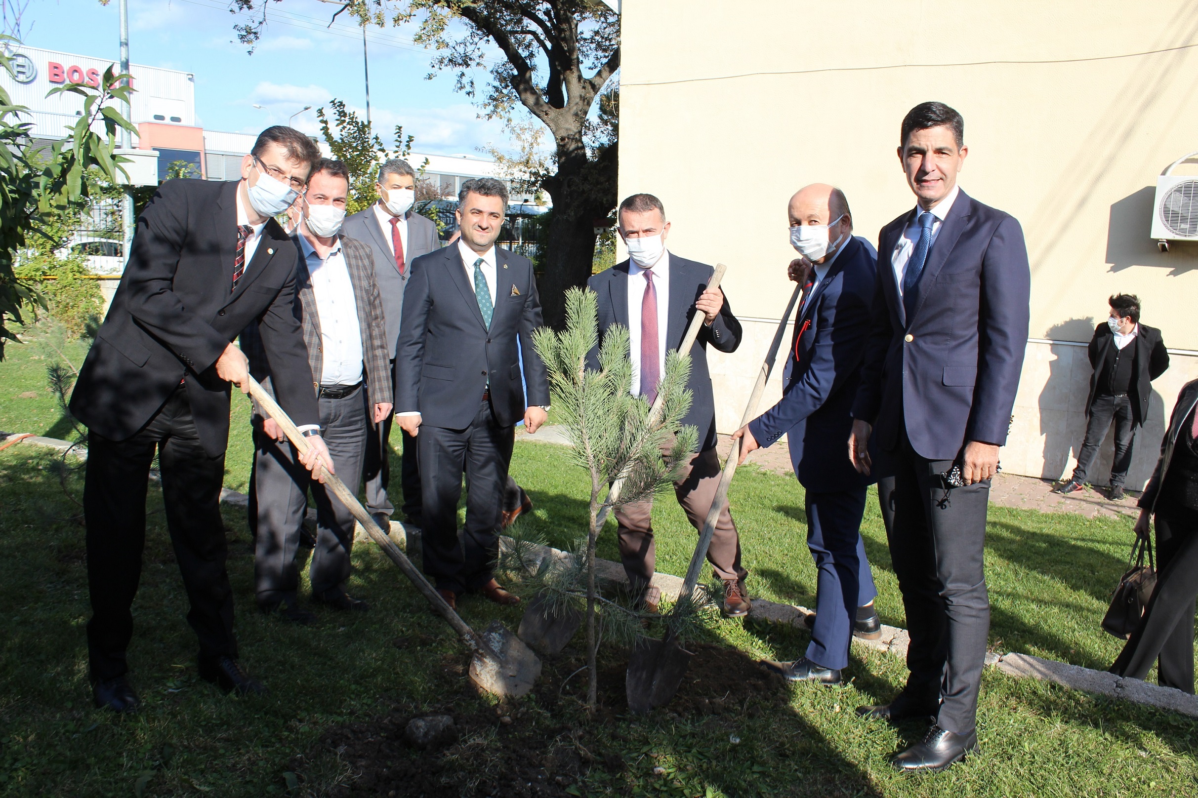 Yapılan açıklamalar ve atölyede gerçekleştirilen incelemenin ardından, laboratuvarın kurulmasına destek verenlere plaket takdim edildi, sanayiciler adına okul bahçesine fidan dikimi gerçekleştirildi.