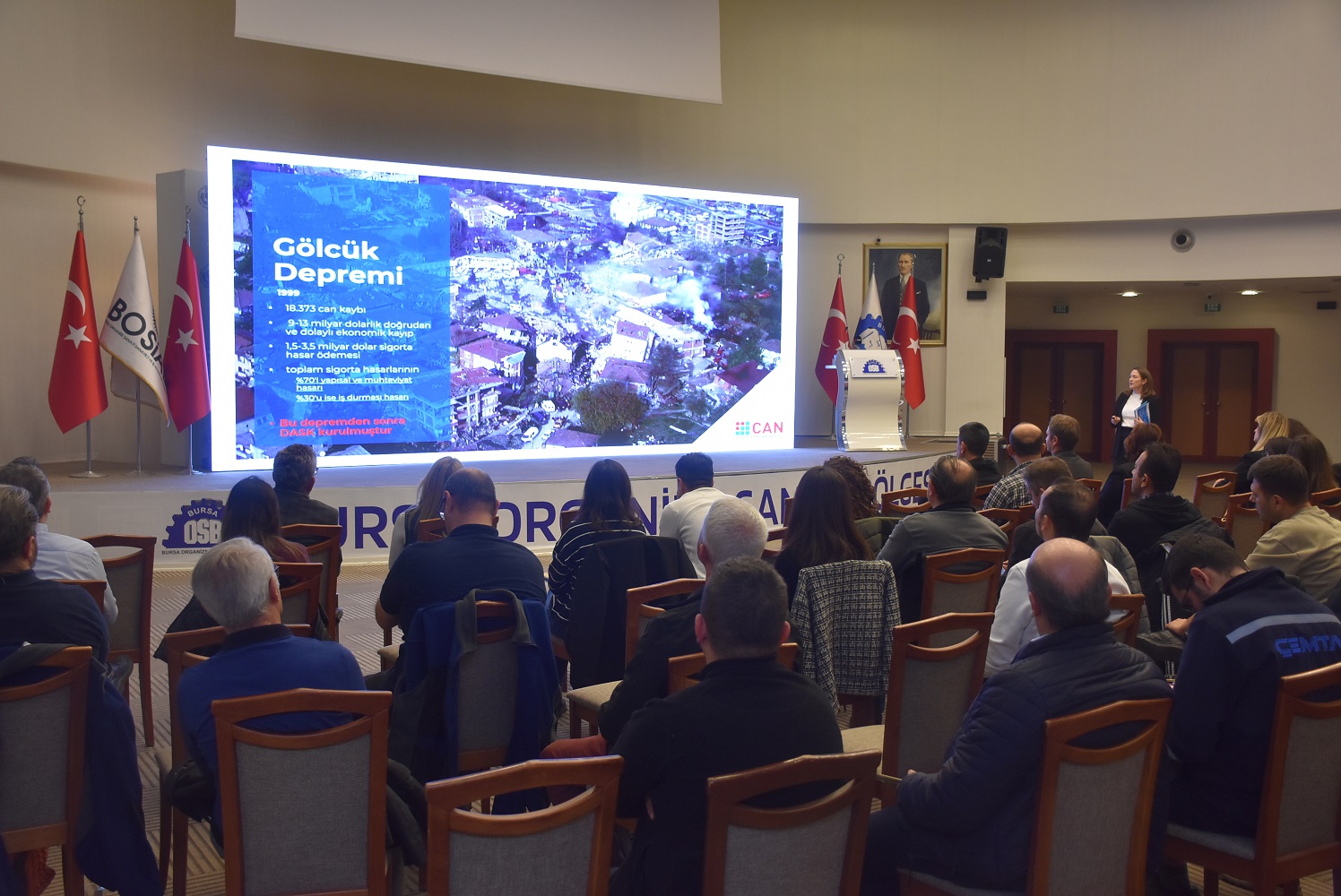 BOSİAD’ın düzenlediği ve deprem sonrası sanayi bölgelerinde yaşanabilecek ancak göz ardı edilen büyük sorunların masaya yatırıldığı seminerde, konuşmacılar sanayicilere acil deprem risk analizi yaptırmaları, sigorta süreçlerini doğru planlamaları ve iş sürekliliği planlarını hazırlamaları konularında uyarılarda bulundu.
