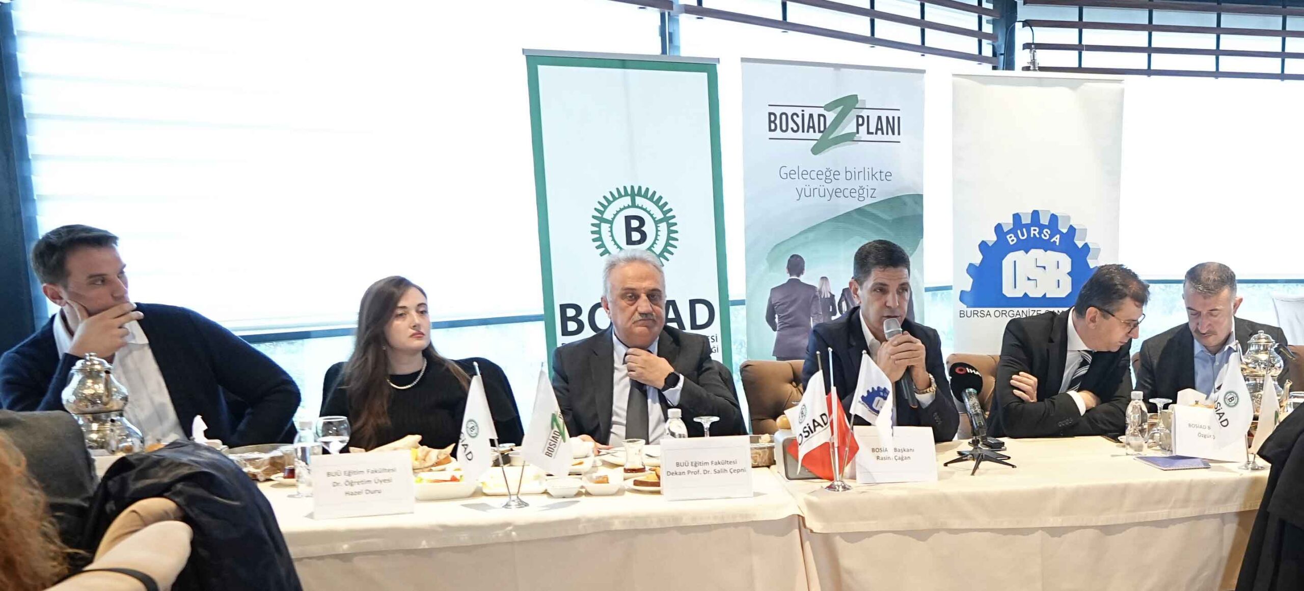 BOSİAD Yönetim Kurulu Başkan Yardımcısı ve Eğitim Komisyonu Başkanı Özgür Şahin, Bursa Uludağ Üniversitesi (BUÜ) Eğitim Fakültesi Dekanı Prof. Dr. Salih Çepni, Bursa İl Milli Eğitim Müdür Yardımcısı Bülent Altıntaş, BUÜ Eğitim Fakültesi Dr. Öğr. Üyesi Hazel Duru, Temel Eğitim Bölümü Dr. Arş. Muhammed Muzaffer Özhan, BOSİAD Z Meclisi Danışmanı İpek Gezer’in katılımıyla Bursa OSB Meşelipark Sosyal Tesisleri içerisindeki Cemil Usta’da gerçekleştirilen toplantıda konuşan BOSİAD Yönetim Kurulu Başkanı Rasim Çağan, şunları söyledi: